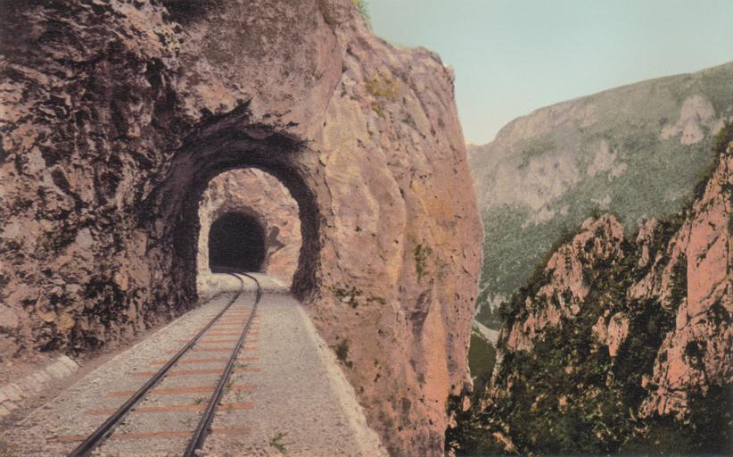 Keywords: Narrow-Gauge-Railway Ostbahn Tunnels-No-7-6 West-of-Pale.jpg en The eastern portals of the tunnels No 7 and 6 located in the gorge of the Paljanska Miljacka River as seen in this downstream view towards Dovlići Old postcard J Studnička Co Sarajevo 1907 43 49 29 3 N 18 30 07 1 E heading NW Bosnian Eastern railway Postcards of Bosnia and Herzegovina Rail tunnels in Bosnia and Herzegovina Rail transport in Bosnia and Herzegovina in the 1900s PD-old-70-1923 |
