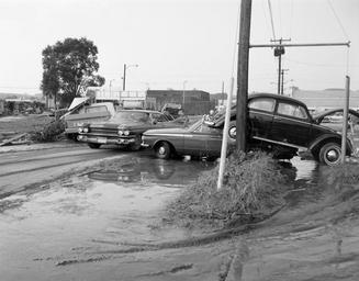 Keywords: richmond va usa hurricane camille hurricanecamille flood flooding damage natural disaster naturaldisaster virginia richmond va usa virginiarichmondvausa blackandwhite monochrome outdoor black and white A driver naviagates through vehicles damaged during Hurricane Camille on Sycamore Avenue. Located just off Rt. 501 in Buena Vista, Rockbridge County. No. 69-1179, Virginia Governor's Negative Collection, Library of Virginia. A driver naviagates through vehicles damaged during Hurricane Camille on Sycamore Avenue. Located just off Rt. 501 in Buena Vista, Rockbridge County. No. 69-1179, Virginia Governor's Negative Collection, Library of Virginia. |