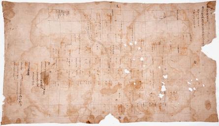 | Keywords: Naruto rice field map.gif en Map of rice fields in Naruto today central Takaoka a former manor of Tōdai-ji The map had been in the possession of Tōdai-ji unbound ink and light color on linen cloth 79 8 × 140 5 cm 31 4 × 55 3 in http //katakago info/html/uploads/wp-content/uploads/image101 gif Author 759 PD-old-100 superseded Naruto map jpg National Treasures of Japan ancient documents Nara National Museum Old maps Nara period | ||||