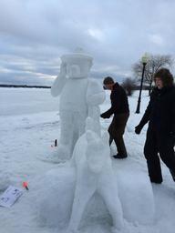 Keywords: They are finally starting to look done! On Wednesday, February 3rd we add finish carving and get to add some color. winter sculpture ice michigan cadillac national forests nasf huronmanistee