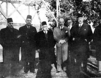 Keywords: Nasib al-Bakri3.jpg ar الرئيس لطفي الحفار مع المفوض السامي جابريل بيو عام 1939<br>من اليمين وزير العدل نسيب البكري - وزير الاقتصاد سليم جنبرت - المفوض الفرنسي - الرئيس الحفار - وزير الخارجية فايز الخوري - وزير الداخلية مظهر باشا رسلان en Lutfi al-Haffar and Gabriel Peaux the French Commissioner in 1939<br>From left to right Mazhar Raslan the Minister of Interior Fayez al-Khury the Minister of Foreign Affairs Prime Minister Lutfi al-Haffar the French High Commissioner Gabriel Peaux Nasib al-Bakri the Minister of Justice and Saleem Jambart the Minister of Economy 2016-11-24 http //www syrianhistory com/ar/photos tag D9 86 D8 B3 D9 8A D8 A8+ D8 A7 D9 84 D8 A8 D9 83 D8 B1 D9 8A موقع التاريخ السوري - Syrian History other versions Custom license marker 2016 11 24 PD-Syria Nasib al-Bakri |