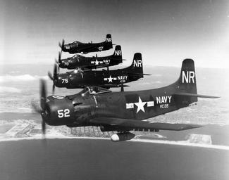 Keywords: blackandwhite monochrome black and white Four AD-1 "Skyraiders" from VC-35 fly in formation over San Diego, 4 October 1950. Photo courtesy of the Naval Historical Center. Repository: San Diego Air and Space Museum Archive Four AD-1 "Skyraiders" from VC-35 fly in formation over San Diego, 4 October 1950. Photo courtesy of the Naval Historical Center. Repository: San Diego Air and Space Museum Archive |