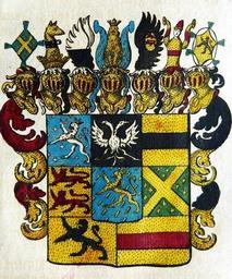 Keywords: Nassau-Fuersten-Wappen (Walramsche Linie).png žWapen der Fürsten zu Nassau von der älteren Linie Walramsche Linie Nassau-Saarbrücken N -Weilburg N -Usingen N -Idstein altkolorierter Kupferstich; Wappendarstellung aus Johann Wolfgang Triers Werk žEinleitung zu der Wapen-Kunst ; Leipzig 1714 1714 Johann Wolfgang Trier PD-old-100 Wappenrecht Coats of arms of Nassau Coats of arms of families of Germany - N |