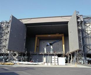 MAKE A MEME View Large Image outdoor architecture building (AC93-0150-114): This photograph shows a McDonnell Douglas F/A-18 being installed in the National Full-Scale Tunnel Aerodynamics Complex’s 80- by 120-foot test section. (AC93-0150-114): This photograph shows ...