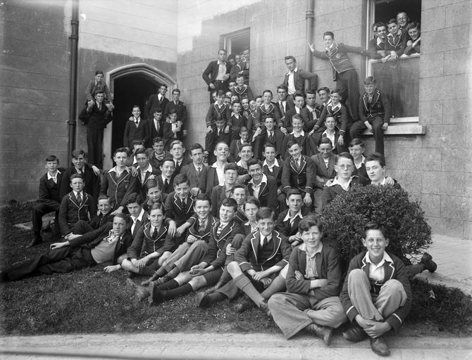 | Keywords: public domain blackandwhite monochrome people good counsel college goodcounselcollege school good counsel goodcounsel students pupils uniforms smiling laughing blazers ties teachers boys crests wednesday 8th may 1935 1930s thirties a.h. poole ahpoole arthur henri poole arthurhenripoole glass negative glassnegative new ross newross wexford ireland leinster schooldays pioneer pin pioneerpin hobnailed boots hobnailedboots badges catholic boy scouts catholicboyscouts augustinian in ombibus caritas inombibuscaritas in all things love inallthingslove the counsel thecounsel o.s.a. osa order of st. augustine orderofstaugustine charles muldoon charlesmuldoon national library of ireland nationallibraryofireland people identified peopleidentified poole photographic collection poolephotographiccollection blackandwhite people monochrome black and white Public Domain: National Library of Ireland on The Commons Public Domain: National Library of Ireland on The Commons Choosing photos for this stream is an interesting process, but whenever a photo makes me laugh that more or less clinches a slot, and that's what happened when I came across this one. Hope you like it too... So, presenting the pupils at Good Counsel College (definitely) in New Ross, Co. Wexford (we thought). And we now know we were right about New Ross, thanks to eyelightfilms who found this on the Good Counsel College website: "From 1890 until 1980 the old Good Counsel College stood in the heart of New Ross. It was a small boarding school which catered for students from all parts of Ireland." See our Flickr map above right for the location of this photo unearthed by blackpoolbeach on an OSI historic map. Thanks to Inverarra for this lovely information about one of the boys, who was his uncle: "I recognise one of the boys as the late Charles Muldoon from Tiernascragh in Co.Galway. He is the boy with glasses standing with his left shoulder against the downpipe. He was about 18 years old at the time and went on to be ordained an Augustinian priest in Rome during W.W.2. He later served in Australia, Limerick and Galway before retiring from San Francisco around 1985. Had a reputation for being a fine bridge player. He was very proud of his poker school in New Ross which by all accounts was quite profitable. He was even prouder of getting wind of a crackdown by the authorities and selling the deck of cards just days before they were confiscated. There is a possibility that some of these boys are still alive and might be able to put names to the happy faces. Surely one of the finest school photos I have ever seen." Date: Wednesday, 8 May 1935 NLI Ref.: POOLEWP 4087 Choosing photos for this stream is an interesting process, but whenever a photo makes me laugh that more or less clinches a slot, and that's what happened when I came across this one. Hope you like it too... So, presenting the pupils at Good Counsel College (definitely) in New Ross, Co. Wexford (we thought). And we now know we were right about New Ross, thanks to eyelightfilms who found this on the Good Counsel College website: "From 1890 until 1980 the old Good Counsel College stood in the heart of New Ross. It was a small boarding school which catered for students from all parts of Ireland." See our Flickr map above right for the location of this photo unearthed by blackpoolbeach on an OSI historic map. Thanks to Inverarra for this lovely information about one of the boys, who was his uncle: "I recognise one of the boys as the late Charles Muldoon from Tiernascragh in Co.Galway. He is the boy with glasses standing with his left shoulder against the downpipe. He was about 18 years old at the time and went on to be ordained an Augustinian priest in Rome during W.W.2. He later served in Australia, Limerick and Galway before retiring from San Francisco around 1985. Had a reputation for being a fine bridge player. He was very proud of his poker school in New Ross which by all accounts was quite profitable. He was even prouder of getting wind of a crackdown by the authorities and selling the deck of cards just days before they were confiscated. There is a possibility that some of these boys are still alive and might be able to put names to the happy faces. Surely one of the finest school photos I have ever seen." Date: Wednesday, 8 May 1935 NLI Ref.: POOLEWP 4087 |