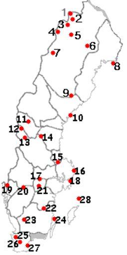 Keywords: National parks of Sweden numbers.png Made my me Original source is http //www internat naturvardsverket se/documents/nature/engpark/natpbild/karta2 gif No names on it only numbers here are names 1 Vadvetjåkka 2 Abisko 3 Stora Sjöfallet 4 Padjelanta 5 Sarek 6 Muddus 7 Pieljekaise 8 Haparanda Skärgård 9 Björnlandet 10 Skuleskogen 11 Sånfjället 12 Töfsingdalen 13 Fulufjället 14 Hamra 15 Färnebofjärden 16 Ängsö 17 Garphyddan 18 Tyresta 19 Tresticklan 20 Djurö 21 Tiveden 22 Norra Kvill 23 Store Mosse 24 Blå Jungfrun 25 Söderåsen 26 Dalby Söderskog 27 Stenshuvud 28 Gotska Sandön Borders are of provinces See Image Fred-Chess - Landskap Sweden text-color png for province names National parks of Sweden Maps of Sweden Maps of protected areas
