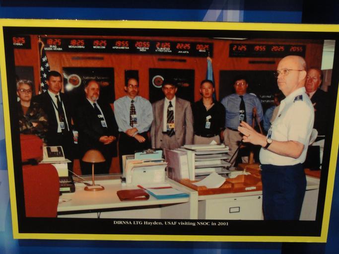 | View Original: | National Security Operations Center photograph, 2001, with Gen. Michael Hayden - National Cryptologic Museum - DSC07662.JPG (4320x3240) | |||