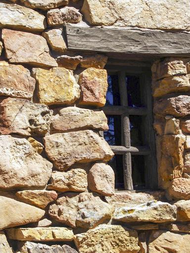 Keywords: natural building rocks window wood facade old window heritage arizona usa