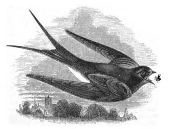Keywords: Natural History, Birds - Chimney Swallow.jpg en Chimney Swallow as Hirundo rustica L Image from Natural History Birds 1849 https //archive org/details/NaturalHistoryBirds Philip Henry Gosse PD-100 Natural History Birds Gosse Hirundo rustica in art |