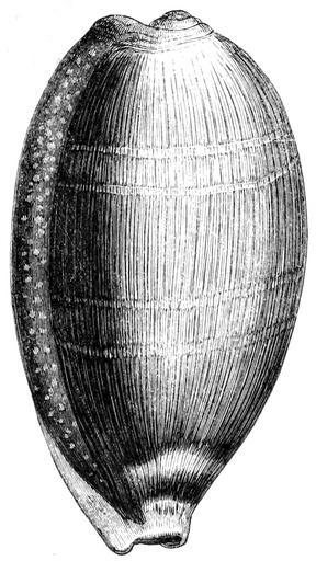 Keywords: Natural History - Mollusca - Cowry half-grown.png En Illustration from Natural History Mollusca 1854 p 168 - Half-grown Cowry Cypræa exanthemata Modern name 2012 is Macrocypraea zebra http //www archive org/details/naturalhistorymo00goss 1854 creator Philip Henry Gosse PD-old-100-1923 1888 Natural History - Mollusca Macrocypraea zebra |