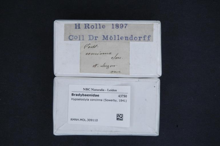 | Keywords: Naturalis Biodiversity Center - RMNH.MOL.309110 1 - Hypselostyla concinna (Sowerby, 1841) - Bradybaenidae - Mollusc shell.jpeg artwork Dimensions artwork Document type Bradybaenidae Hypselostyla Individual count Infraspecific epithet Infraspecific rank Institution Naturalis Kind of unit artwork Kind of unit specimen shell Life stage Medium artwork Nomenclatural code Source institute Rijksmuseum van Natuurlijke Historie Leiden Scale the width of the text on the species/QR-code label is 38 mm Occurrence ID page Other fields Other versions artwork Permission license Naturalis donation CC-0 Mollusca Publication location Scientific name Hypselostyla concinna Sowerby 1841 Scientific name authorship Sowerby 1841 Source url http //bioportal naturalis nl Specific epithet concinna State or province Subject keywords artwork Subject keywords publication Title artwork Title publication Type status Uploaded with GWToolset Naturalis_Biodiversity_Center_-_RMNH MOL 309110_1_-_Hypselostyla_concinna_ Sowerby _1841 _-_Bradybaenidae_-_Mollusc_shell http //medialib naturalis nl/file/id/RMNH MOL 309110_1/format/large Media donated by Naturalis Biodiversity Center Molluscs at Naturalis from the Rijksmuseum van Natuurlijke Historie Hypselostyla concinna Hypselostyla |