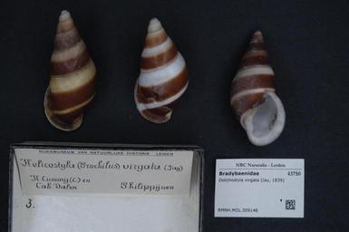 Keywords: Naturalis Biodiversity Center - RMNH.MOL.309146 - Dolichostyla virgata (Jay, 1839) - Bradybaenidae - Mollusc shell.jpeg artwork Dimensions artwork Document type Bradybaenidae Dolichostyla Individual count Infraspecific epithet Infraspecific rank Institution Naturalis Kind of unit artwork Kind of unit specimen shell Life stage Medium artwork Nomenclatural code Source institute Rijksmuseum van Natuurlijke Historie Leiden Scale the width of the text on the species/QR-code label is 38 mm Occurrence ID page Other fields Other versions artwork Permission license Naturalis donation CC-0 Mollusca Publication location Scientific name Dolichostyla virgata Jay 1839 Scientific name authorship Jay 1839 Source url http //bioportal naturalis nl Specific epithet virgata State or province Subject keywords artwork Subject keywords publication Title artwork Title publication Type status Uploaded with GWToolset Naturalis_Biodiversity_Center_-_RMNH MOL 309146_-_Dolichostyla_virgata_ Jay _1839 _-_Bradybaenidae_-_Mollusc_shell http //medialib naturalis nl/file/id/RMNH MOL 309146/format/large Media donated by Naturalis Biodiversity Center Molluscs at Naturalis from the Rijksmuseum van Natuurlijke Historie Dolichostyla virgata Dolichostyla |