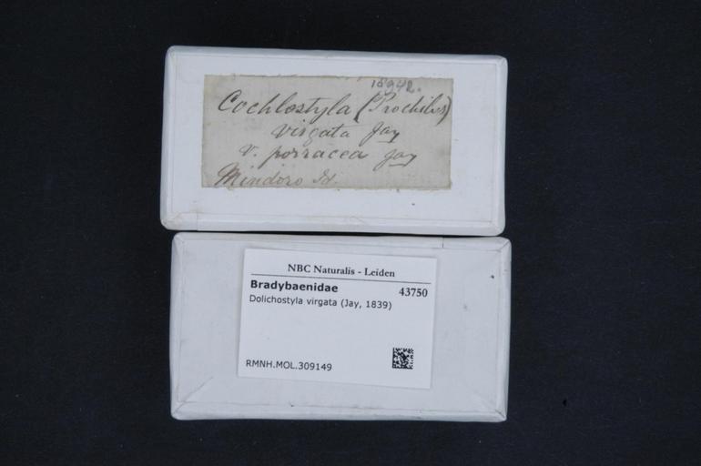 Keywords: Naturalis Biodiversity Center - RMNH.MOL.309149 1 - Dolichostyla virgata (Jay, 1839) - Bradybaenidae - Mollusc shell.jpeg artwork Dimensions artwork Document type Bradybaenidae Dolichostyla Individual count Infraspecific epithet Infraspecific rank Institution Naturalis Kind of unit artwork Kind of unit specimen shell Life stage Medium artwork Nomenclatural code Source institute Rijksmuseum van Natuurlijke Historie Leiden Scale the width of the text on the species/QR-code label is 38 mm Occurrence ID page Other fields Other versions artwork Permission license Naturalis donation CC-0 Mollusca Publication location Scientific name Dolichostyla virgata Jay 1839 Scientific name authorship Jay 1839 Source url http //bioportal naturalis nl Specific epithet virgata State or province Subject keywords artwork Subject keywords publication Title artwork Title publication Type status Uploaded with GWToolset Naturalis_Biodiversity_Center_-_RMNH MOL 309149_1_-_Dolichostyla_virgata_ Jay _1839 _-_Bradybaenidae_-_Mollusc_shell http //medialib naturalis nl/file/id/RMNH MOL 309149_1/format/large Media donated by Naturalis Biodiversity Center Molluscs at Naturalis from the Rijksmuseum van Natuurlijke Historie Dolichostyla virgata Dolichostyla |