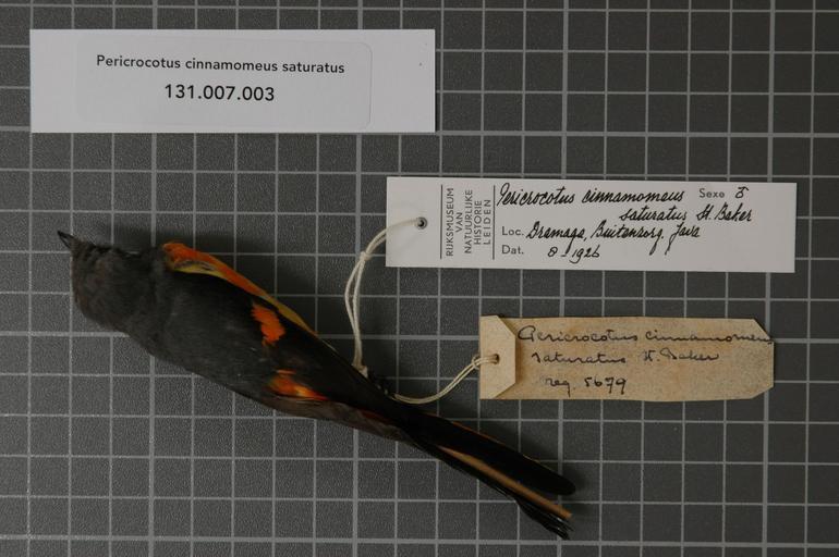 | Keywords: Naturalis Biodiversity Center - RMNH.AVES.124198 1 - Pericrocotus cinnamomeus saturatus Stuart Baker, 1920 - Campephagidae - bird skin specimen.jpeg artwork Dimensions artwork Document type Campephagidae Pericrocotus Individual count 1 Infraspecific epithet saturatus Infraspecific rank Institution Naturalis Kind of unit artwork Kind of unit specimen skin Life stage Indonesia Java Dramaga Buitenzorg Medium artwork Nomenclatural code Occurrence ID page Other fields Other versions artwork Permission license Naturalis donation CC-0 Publication location Scientific name Pericrocotus cinnamomeus saturatus Stuart Baker 1920 Scientific name authorship Stuart Baker 1920 male Source url http //bioportal naturalis nl Specific epithet cinnamomeus State or province Subject keywords artwork Subject keywords publication Title artwork Title publication Type status Uploaded with GWToolset Naturalis_Biodiversity_Center_-_RMNH AVES 124198_1_-_Pericrocotus_cinnamomeus_saturatus_Stuart_Baker _1920_-_Campephagidae_-_bird_skin_specimen http //medialib naturalis nl/file/id/RMNH AVES 124198_1/format/large Media donated by Naturalis Biodiversity Center Songbird specimens at Naturalis Biodiversity Center Pericrocotus cinnamomeus museum specimens |