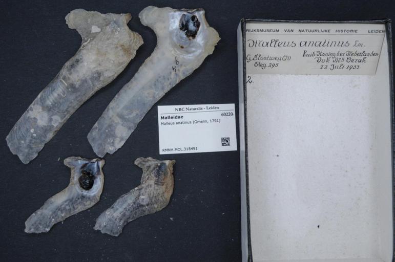 Keywords: Naturalis Biodiversity Center - RMNH.MOL.318491 - Malleus anatinus (Gmelin, 1791) - Malleidae - Mollusc shell.jpeg artwork Dimensions artwork Document type Malleidae Malleus Individual count Infraspecific epithet Infraspecific rank Institution Naturalis Kind of unit artwork Kind of unit specimen shell Life stage Medium artwork Nomenclatural code Source institute Rijksmuseum van Natuurlijke Historie Leiden Scale the width of the text on the species/QR-code label is 38 mm Occurrence ID page Pterioida Other fields Other versions artwork Permission license Naturalis donation CC-0 Mollusca Publication location Scientific name Malleus anatinus Gmelin 1791 Scientific name authorship Gmelin 1791 Source url http //bioportal naturalis nl Specific epithet anatinus State or province Subject keywords artwork Subject keywords publication Title artwork Title publication Type status Uploaded with GWToolset Naturalis_Biodiversity_Center_-_RMNH MOL 318491_-_Malleus_anatinus_ Gmelin _1791 _-_Malleidae_-_Mollusc_shell http //medialib naturalis nl/file/id/RMNH MOL 318491/format/large Media donated by Naturalis Biodiversity Center Molluscs at Naturalis from the Rijksmuseum van Natuurlijke Historie Malleus anatinus Malleus genus |