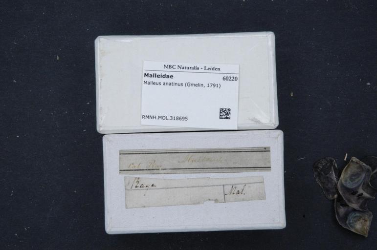 Keywords: Naturalis Biodiversity Center - RMNH.MOL.318695 1 - Malleus anatinus (Gmelin, 1791) - Malleidae - Mollusc shell.jpeg artwork Dimensions artwork Document type Malleidae Malleus Individual count Infraspecific epithet Infraspecific rank Institution Naturalis Kind of unit artwork Kind of unit specimen shell Life stage Medium artwork Nomenclatural code Source institute Rijksmuseum van Natuurlijke Historie Leiden Scale the width of the text on the species/QR-code label is 38 mm Occurrence ID page Pterioida Other fields Other versions artwork Permission license Naturalis donation CC-0 Mollusca Publication location Scientific name Malleus anatinus Gmelin 1791 Scientific name authorship Gmelin 1791 Source url http //bioportal naturalis nl Specific epithet anatinus State or province Subject keywords artwork Subject keywords publication Title artwork Title publication Type status Uploaded with GWToolset Naturalis_Biodiversity_Center_-_RMNH MOL 318695_1_-_Malleus_anatinus_ Gmelin _1791 _-_Malleidae_-_Mollusc_shell http //medialib naturalis nl/file/id/RMNH MOL 318695_1/format/large Media donated by Naturalis Biodiversity Center Molluscs at Naturalis from the Rijksmuseum van Natuurlijke Historie Malleus anatinus Malleus genus |