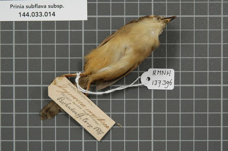 | Keywords: Naturalis Biodiversity Center - RMNH.AVES.137396 2 - Prinia subflava subsp. - Sylviidae - bird skin specimen.jpeg artwork Dimensions artwork Document type Sylviidae Prinia Individual count 1 Infraspecific epithet subsp Infraspecific rank Institution Naturalis Kind of unit artwork Kind of unit specimen skin Life stage Ujiji Medium artwork Nomenclatural code Additional identification info Noch vergleichen ; Stimmt nicht mit Sharpe Sex remark on label männlich Occurrence ID page Other fields Other versions artwork Permission license Naturalis donation CC-0 Publication location Scientific name Prinia subflava subsp Scientific name authorship male Source url http //bioportal naturalis nl Specific epithet subflava State or province Subject keywords artwork Subject keywords publication Title artwork Title publication Type status Uploaded with GWToolset Naturalis_Biodiversity_Center_-_RMNH AVES 137396_2_-_Prinia_subflava_subsp _-_Sylviidae_-_bird_skin_specimen http //medialib naturalis nl/file/id/RMNH AVES 137396_2/format/large Media donated by Naturalis Biodiversity Center Songbird specimens at Naturalis Biodiversity Center Prinia subflava Prinia |