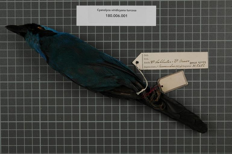 | Keywords: Naturalis Biodiversity Center - RMNH.AVES.140079 2 - Cyanolyca viridicyana turcosa (Bonaparte, 1853) - Corvidae - bird skin specimen.jpeg artwork Dimensions artwork Document type Corvidae Cyanolyca Individual count 1 Infraspecific epithet turcosa Infraspecific rank Institution Naturalis Kind of unit artwork Kind of unit specimen skin Life stage Ecuador Riobamba Medium artwork Nomenclatural code Occurrence ID page Other fields Other versions artwork Permission license Naturalis donation CC-0 Publication location Scientific name Cyanolyca viridicyana turcosa Bonaparte 1853 Scientific name authorship Bonaparte 1853 Source url http //bioportal naturalis nl Specific epithet viridicyana State or province Subject keywords artwork Subject keywords publication Title artwork Title publication Type status Uploaded with GWToolset Naturalis_Biodiversity_Center_-_RMNH AVES 140079_2_-_Cyanolyca_viridicyana_turcosa_ Bonaparte _1853 _-_Corvidae_-_bird_skin_specimen http //medialib naturalis nl/file/id/RMNH AVES 140079_2/format/large Media donated by Naturalis Biodiversity Center Songbird specimens at Naturalis Biodiversity Center Cyanolyca viridicyana Cyanolyca |
