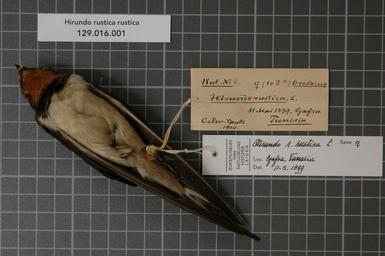 Keywords: Naturalis Biodiversity Center - RMNH.AVES.124805 1 - Hirundo rustica rustica Linnaeus, 1758 - Hirundinidae - bird skin specimen.jpeg artwork Dimensions artwork Document type Hirundinidae Hirundo Individual count 1 Infraspecific epithet rustica Infraspecific rank Institution Naturalis Kind of unit artwork Kind of unit specimen skin Life stage Tunesia Gafsa Medium artwork Nomenclatural code ADDITIONAL FAMILY INFO to male 'a' Sex remark to male a Occurrence ID page Other fields Other versions artwork Permission license Naturalis donation CC-0 Publication location Scientific name Hirundo rustica rustica Linnaeus 1758 Scientific name authorship Linnaeus 1758 female Source url http //bioportal naturalis nl Specific epithet rustica State or province Subject keywords artwork Subject keywords publication Title artwork Title publication Type status Uploaded with GWToolset Naturalis_Biodiversity_Center_-_RMNH AVES 124805_1_-_Hirundo_rustica_rustica_Linnaeus _1758_-_Hirundinidae_-_bird_skin_specimen http //medialib naturalis nl/file/id/RMNH AVES 124805_1/format/large Media donated by Naturalis Biodiversity Center Songbird specimens at Naturalis Biodiversity Center Hirundo rustica rustica museum specimens