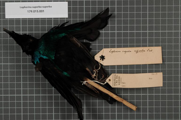 | Keywords: Naturalis Biodiversity Center - RMNH.AVES.140805 1 - Lophorina superba superba (Pennant, 1781) - Paradisaeidae - bird skin specimen.jpeg artwork Dimensions artwork Document type Paradisaeidae Lophorina Individual count 1 Infraspecific epithet superba Infraspecific rank Institution Naturalis Kind of unit artwork Kind of unit specimen skin Life stage adult Medium artwork Nomenclatural code Additional label info Mus Zoöl Bogor Additional info Xxx Occurrence ID page Other fields Other versions artwork Permission license Naturalis donation CC-0 Publication location Scientific name Lophorina superba superba Pennant 1781 Scientific name authorship Pennant 1781 male Source url http //bioportal naturalis nl Specific epithet superba State or province Subject keywords artwork Subject keywords publication Title artwork Title publication Type status Uploaded with GWToolset Naturalis_Biodiversity_Center_-_RMNH AVES 140805_1_-_Lophorina_superba_superba_ Pennant _1781 _-_Paradisaeidae_-_bird_skin_specimen http //medialib naturalis nl/file/id/RMNH AVES 140805_1/format/large Media donated by Naturalis Biodiversity Center Songbird specimens at Naturalis Biodiversity Center Lophorina superba Lophorina |