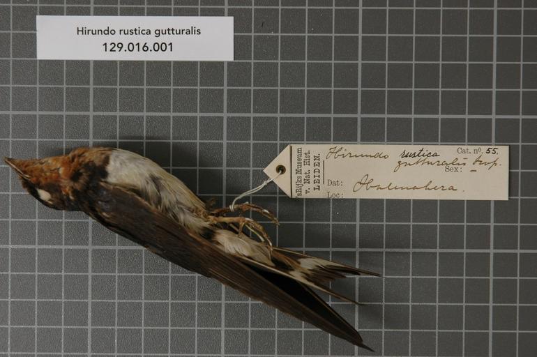 Keywords: Naturalis Biodiversity Center - RMNH.AVES.124904 1 - Hirundo rustica gutturalis Scopoli, 1786 - Hirundinidae - bird skin specimen.jpeg artwork Dimensions artwork Document type Hirundinidae Hirundo Individual count 1 Infraspecific epithet gutturalis Infraspecific rank Institution Naturalis Kind of unit artwork Kind of unit specimen skin Life stage Halmahera Medium artwork Nomenclatural code Occurrence ID page Other fields Other versions artwork Permission license Naturalis donation CC-0 Publication location Scientific name Hirundo rustica gutturalis Scopoli 1786 Scientific name authorship Scopoli 1786 Source url http //bioportal naturalis nl Specific epithet rustica State or province Halmahera Subject keywords artwork Subject keywords publication Title artwork Title publication Type status Uploaded with GWToolset Naturalis_Biodiversity_Center_-_RMNH AVES 124904_1_-_Hirundo_rustica_gutturalis_Scopoli _1786_-_Hirundinidae_-_bird_skin_specimen http //medialib naturalis nl/file/id/RMNH AVES 124904_1/format/large Media donated by Naturalis Biodiversity Center Songbird specimens at Naturalis Biodiversity Center Hirundo rustica gutturalis museum specimens |