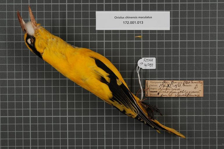 Keywords: Naturalis Biodiversity Center - RMNH.AVES.141397 1 - Oriolus chinensis maculatus Vieillot, 1817 - Oriolidae - bird skin specimen.jpeg artwork Dimensions artwork Document type Oriolidae Oriolus Individual count 1 Infraspecific epithet maculatus Infraspecific rank Institution Naturalis Kind of unit artwork Kind of unit specimen skin Life stage Indonesia West Sumatra Ajer Bangis Medium artwork Nomenclatural code Occurrence ID page Other fields Other versions artwork Permission license Naturalis donation CC-0 Publication location Scientific name Oriolus chinensis maculatus Vieillot 1817 Scientific name authorship Vieillot 1817 male Source url http //bioportal naturalis nl Specific epithet chinensis State or province West Sumatra Subject keywords artwork Subject keywords publication Title artwork Title publication Type status Uploaded with GWToolset Naturalis_Biodiversity_Center_-_RMNH AVES 141397_1_-_Oriolus_chinensis_maculatus_Vieillot _1817_-_Oriolidae_-_bird_skin_specimen http //medialib naturalis nl/file/id/RMNH AVES 141397_1/format/large Media donated by Naturalis Biodiversity Center Songbird specimens at Naturalis Biodiversity Center Oriolus chinensis Oriolus |