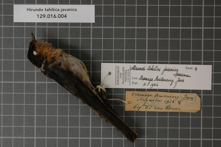 | Keywords: Naturalis Biodiversity Center - RMNH.AVES.125059 1 - Hirundo tahitica javanica Sparrman, 1789 - Hirundinidae - bird skin specimen.jpeg artwork Dimensions artwork Document type Hirundinidae Hirundo Individual count 1 Infraspecific epithet javanica Infraspecific rank Institution Naturalis Kind of unit artwork Kind of unit specimen skin Life stage Indonesia Java Dramaga Buitenzorg Medium artwork Nomenclatural code Occurrence ID page Other fields Other versions artwork Permission license Naturalis donation CC-0 Publication location Scientific name Hirundo tahitica javanica Sparrman 1789 Scientific name authorship Sparrman 1789 female Source url http //bioportal naturalis nl Specific epithet tahitica State or province Subject keywords artwork Subject keywords publication Title artwork Title publication Type status Uploaded with GWToolset Naturalis_Biodiversity_Center_-_RMNH AVES 125059_1_-_Hirundo_tahitica_javanica_Sparrman _1789_-_Hirundinidae_-_bird_skin_specimen http //medialib naturalis nl/file/id/RMNH AVES 125059_1/format/large Media donated by Naturalis Biodiversity Center Songbird specimens at Naturalis Biodiversity Center Hirundo tahitica museum specimens |