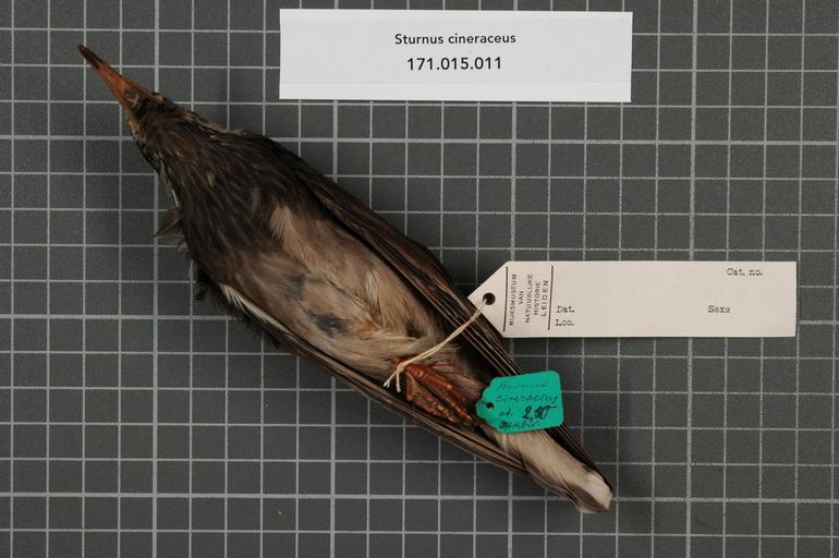 | Keywords: Naturalis Biodiversity Center - RMNH.AVES.144474 1 - Sturnus cineraceus Temminck, 1835 - Sturnidae - bird skin specimen.jpeg artwork Dimensions artwork Document type Sturnidae Sturnus Individual count 1 Infraspecific epithet Infraspecific rank Institution Naturalis Kind of unit artwork Kind of unit specimen skin Life stage adult Medium artwork Nomenclatural code General remarks Last word on green label unreadble Occurrence ID page Other fields Other versions artwork Permission license Naturalis donation CC-0 Publication location Scientific name Sturnus cineraceus Temminck 1835 Scientific name authorship Temminck 1835 Source url http //bioportal naturalis nl Specific epithet cineraceus State or province Subject keywords artwork Subject keywords publication Title artwork Title publication Type status Uploaded with GWToolset Naturalis_Biodiversity_Center_-_RMNH AVES 144474_1_-_Sturnus_cineraceus_Temminck _1835_-_Sturnidae_-_bird_skin_specimen http //medialib naturalis nl/file/id/RMNH AVES 144474_1/format/large Media donated by Naturalis Biodiversity Center Songbird specimens at Naturalis Biodiversity Center Spodiopsar cineraceus |