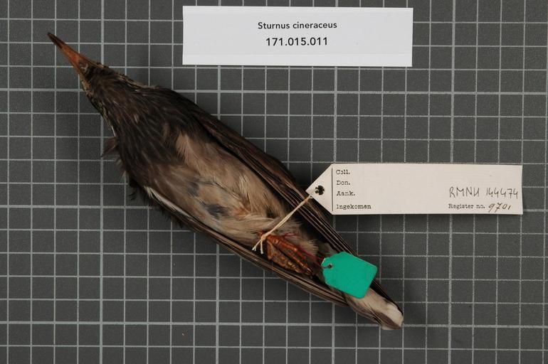 | Keywords: Naturalis Biodiversity Center - RMNH.AVES.144474 2 - Sturnus cineraceus Temminck, 1835 - Sturnidae - bird skin specimen.jpeg artwork Dimensions artwork Document type Sturnidae Sturnus Individual count 1 Infraspecific epithet Infraspecific rank Institution Naturalis Kind of unit artwork Kind of unit specimen skin Life stage adult Medium artwork Nomenclatural code General remarks Last word on green label unreadble Occurrence ID page Other fields Other versions artwork Permission license Naturalis donation CC-0 Publication location Scientific name Sturnus cineraceus Temminck 1835 Scientific name authorship Temminck 1835 Source url http //bioportal naturalis nl Specific epithet cineraceus State or province Subject keywords artwork Subject keywords publication Title artwork Title publication Type status Uploaded with GWToolset Naturalis_Biodiversity_Center_-_RMNH AVES 144474_2_-_Sturnus_cineraceus_Temminck _1835_-_Sturnidae_-_bird_skin_specimen http //medialib naturalis nl/file/id/RMNH AVES 144474_2/format/large Media donated by Naturalis Biodiversity Center Songbird specimens at Naturalis Biodiversity Center Spodiopsar cineraceus |