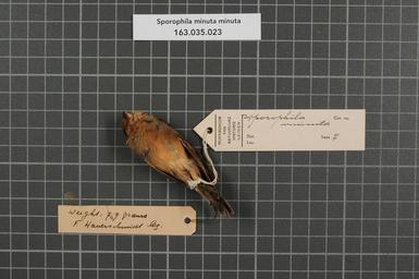 | Keywords: Naturalis Biodiversity Center - RMNH.AVES.14622 2 - Sporophila minuta minuta (Linnaeus, 1758) - Emberizidae - bird skin specimen.jpeg artwork Dimensions artwork Document type Emberizidae Sporophila Individual count 1 Infraspecific epithet minuta Infraspecific rank Institution Naturalis Kind of unit artwork Kind of unit specimen skin Life stage Surinam Zanderij Medium artwork Nomenclatural code Occurrence ID page Other fields Other versions artwork Permission license Naturalis donation CC-0 Publication location Scientific name Sporophila minuta minuta Linnaeus 1758 Scientific name authorship Linnaeus 1758 female Source url http //bioportal naturalis nl Specific epithet minuta State or province Subject keywords artwork Subject keywords publication Title artwork Title publication Type status Uploaded with GWToolset Naturalis_Biodiversity_Center_-_RMNH AVES 14622_2_-_Sporophila_minuta_minuta_ Linnaeus _1758 _-_Emberizidae_-_bird_skin_specimen http //medialib naturalis nl/file/id/RMNH AVES 14622_2/format/large Media donated by Naturalis Biodiversity Center Songbird specimens at Naturalis Biodiversity Center Sporophila Sporophila minuta |
