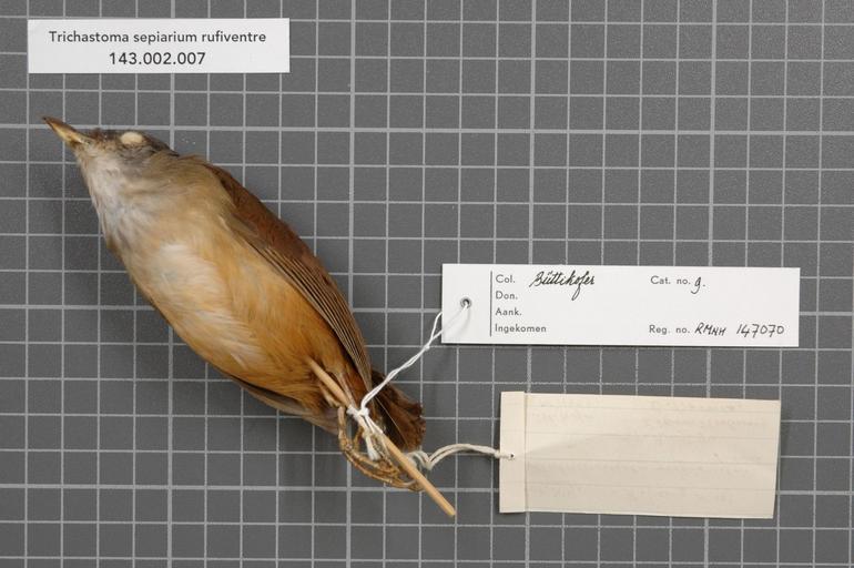 MAKE A MEME View Large Image Naturalis Biodiversity Center - RMNH.AVES.147070 2 - Trichastoma sepiarium rufiventre (Salvadori, 1874) - Timaliidae - bird skin specimen.jpeg artwork Dimensions artwork Document type Timaliidae Trichastoma Individual count 1 Infraspecific ...