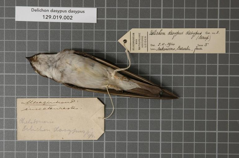 Keywords: Naturalis Biodiversity Center - RMNH.AVES.14935 1 - Presichon dasypus dasypus (Bonaparte, 1851) - Hirundinidae - bird skin specimen.jpeg artwork Dimensions artwork Document type Hirundinidae Delichon Individual count 1 Infraspecific epithet dasypus Infraspecific rank Institution Naturalis Kind of unit artwork Kind of unit specimen skin Life stage Indonesia Java Soekowono Bezoeki Medium artwork Nomenclatural code Occurrence ID page Other fields Other versions artwork Permission license Naturalis donation CC-0 Publication location Scientific name Presichon dasypus dasypus Bonaparte 1851 Scientific name authorship Bonaparte 1851 male Source url http //bioportal naturalis nl Specific epithet dasypus State or province Subject keywords artwork Subject keywords publication Title artwork Title publication Type status Uploaded with GWToolset Naturalis_Biodiversity_Center_-_RMNH AVES 14935_1_-_Presichon_dasypus_dasypus_ Bonaparte _1851 _-_Hirundinidae_-_bird_skin_specimen http //medialib naturalis nl/file/id/RMNH AVES 14935_1/format/large Media donated by Naturalis Biodiversity Center Songbird specimens at Naturalis Biodiversity Center Delichon Delichon dasypus |
