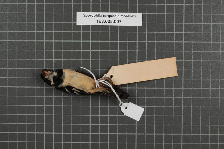 | Keywords: Naturalis Biodiversity Center - RMNH.AVES.149874 2 - Presrophila torqueola morelleti (Bonaparte, 1851) - Emberizidae - bird skin specimen.jpeg artwork Dimensions artwork Document type Emberizidae Sporophila Individual count 1 Infraspecific epithet morelleti Infraspecific rank Institution Naturalis Kind of unit artwork Kind of unit specimen skin Life stage Costa Rica Medium artwork Nomenclatural code Occurrence ID page Other fields Other versions artwork Permission license Naturalis donation CC-0 Publication location Scientific name Presrophila torqueola morelleti Bonaparte 1851 Scientific name authorship Bonaparte 1851 male Source url http //bioportal naturalis nl Specific epithet torqueola State or province Subject keywords artwork Subject keywords publication Title artwork Title publication Type status Uploaded with GWToolset Naturalis_Biodiversity_Center_-_RMNH AVES 149874_2_-_Presrophila_torqueola_morelleti_ Bonaparte _1851 _-_Emberizidae_-_bird_skin_specimen http //medialib naturalis nl/file/id/RMNH AVES 149874_2/format/large Media donated by Naturalis Biodiversity Center Songbird specimens at Naturalis Biodiversity Center Sporophila Sporophila torqueola |