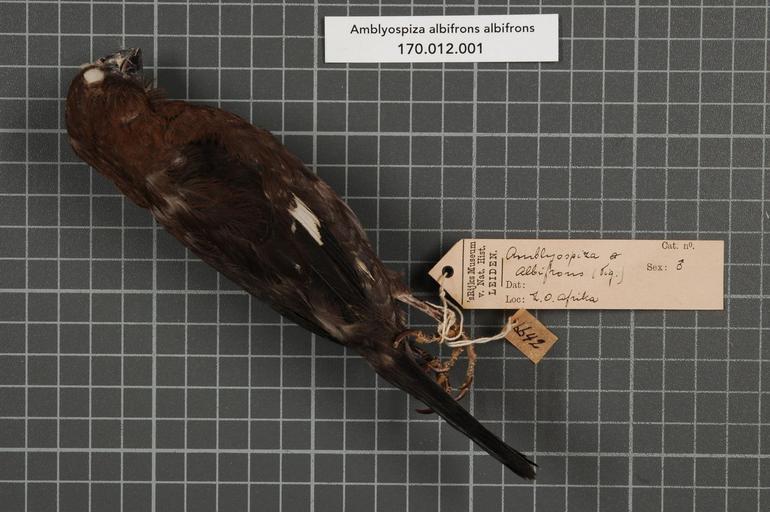 | Keywords: Naturalis Biodiversity Center - RMNH.AVES.150831 1 - Amblyospiza albifrons albifrons (Vigors, 1831) - Ploceidae - bird skin specimen.jpeg artwork Dimensions artwork Document type Ploceidae Amblyospiza Individual count 1 Infraspecific epithet albifrons Infraspecific rank Institution Naturalis Kind of unit artwork Kind of unit specimen skin Life stage Z O Afrika Medium artwork Nomenclatural code Occurrence ID page Other fields Other versions artwork Permission license Naturalis donation CC-0 Publication location Scientific name Amblyospiza albifrons albifrons Vigors 1831 Scientific name authorship Vigors 1831 male Source url http //bioportal naturalis nl Specific epithet albifrons State or province Subject keywords artwork Subject keywords publication Title artwork Title publication Type status Uploaded with GWToolset Naturalis_Biodiversity_Center_-_RMNH AVES 150831_1_-_Amblyospiza_albifrons_albifrons_ Vigors _1831 _-_Ploceidae_-_bird_skin_specimen http //medialib naturalis nl/file/id/RMNH AVES 150831_1/format/large Media donated by Naturalis Biodiversity Center Songbird specimens at Naturalis Biodiversity Center Amblyospiza Amblyospiza albifrons |