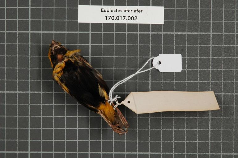 | Keywords: Naturalis Biodiversity Center - RMNH.AVES.151583 2 - Euplectes afer afer Gmelin, 1789 - Ploceidae - bird skin specimen.jpeg artwork Dimensions artwork Document type Ploceidae Euplectes Individual count 1 Infraspecific epithet afer Infraspecific rank Institution Naturalis Kind of unit artwork Kind of unit specimen skin Life stage Côte d'Or Medium artwork Nomenclatural code Occurrence ID page Other fields Other versions artwork Permission license Naturalis donation CC-0 Publication location Scientific name Euplectes afer afer Gmelin 1789 Scientific name authorship Gmelin 1789 male Source url http //bioportal naturalis nl Specific epithet afer State or province Subject keywords artwork Subject keywords publication Title artwork Title publication Type status Uploaded with GWToolset Naturalis_Biodiversity_Center_-_RMNH AVES 151583_2_-_Euplectes_afer_afer_Gmelin _1789_-_Ploceidae_-_bird_skin_specimen http //medialib naturalis nl/file/id/RMNH AVES 151583_2/format/large Media donated by Naturalis Biodiversity Center Songbird specimens at Naturalis Biodiversity Center Euplectes afer Euplectes |
