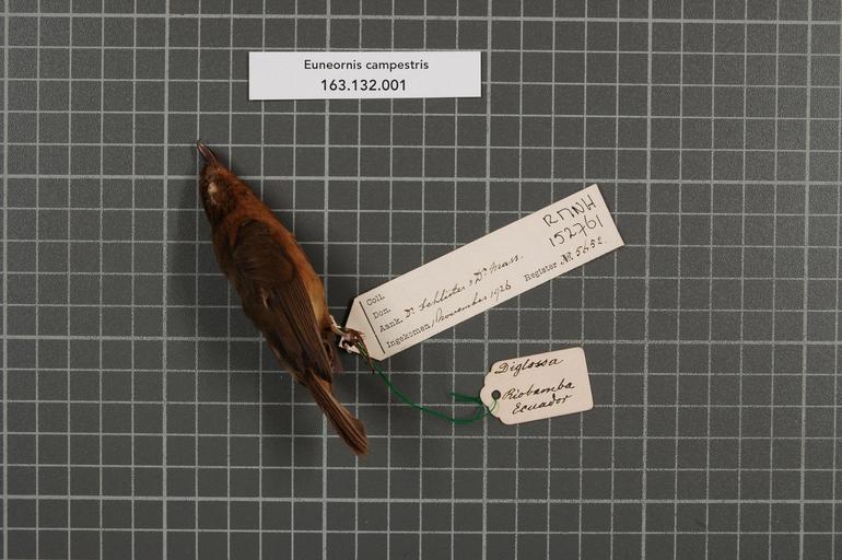 | Keywords: Naturalis Biodiversity Center - RMNH.AVES.152761 1 - Euneornis campestris (Linnaeus, 1758) - Emberizidae - bird skin specimen.jpeg artwork Dimensions artwork Document type Emberizidae Euneornis Individual count 1 Infraspecific epithet Infraspecific rank Institution Naturalis Kind of unit artwork Kind of unit specimen skin Life stage Ecuador Riobamba Medium artwork Nomenclatural code Occurrence ID page Other fields Other versions artwork Permission license Naturalis donation CC-0 Publication location Scientific name Euneornis campestris Linnaeus 1758 Scientific name authorship Linnaeus 1758 Source url http //bioportal naturalis nl Specific epithet campestris State or province Subject keywords artwork Subject keywords publication Title artwork Title publication Type status Uploaded with GWToolset Naturalis_Biodiversity_Center_-_RMNH AVES 152761_1_-_Euneornis_campestris_ Linnaeus _1758 _-_Emberizidae_-_bird_skin_specimen http //medialib naturalis nl/file/id/RMNH AVES 152761_1/format/large Media donated by Naturalis Biodiversity Center Songbird specimens at Naturalis Biodiversity Center Euneornis campestris Euneornis |