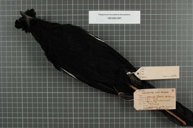 | Keywords: Naturalis Biodiversity Center - RMNH.AVES.15280 2 - Platysmurus leucopterus leucopterus (Temminck, 1824) - Corvidae - bird skin specimen.jpeg artwork Dimensions artwork Document type Corvidae Platysmurus Individual count 1 Infraspecific epithet leucopterus Infraspecific rank Institution Naturalis Kind of unit artwork Kind of unit specimen skin Life stage Indonesia Soengei Poetik Sewang Medium artwork Nomenclatural code ADDITIONAL info remark schalen van kleine witte vogeleiƫren en voorts een menigte insecten als een klein soort wesp met hun nest en broedsel een paar vrij grote rupsen een paar slekjes enz Occurrence ID page Other fields Other versions artwork Permission license Naturalis donation CC-0 Publication location Scientific name Platysmurus leucopterus leucopterus Temminck 1824 Scientific name authorship Temminck 1824 female Source url http //bioportal naturalis nl Specific epithet leucopterus State or province Subject keywords artwork Subject keywords publication Title artwork Title publication Type status Uploaded with GWToolset Naturalis_Biodiversity_Center_-_RMNH AVES 15280_2_-_Platysmurus_leucopterus_leucopterus_ Temminck _1824 _-_Corvidae_-_bird_skin_specimen http //medialib naturalis nl/file/id/RMNH AVES 15280_2/format/large Media donated by Naturalis Biodiversity Center Songbird specimens at Naturalis Biodiversity Center Platysmurus leucopterus |