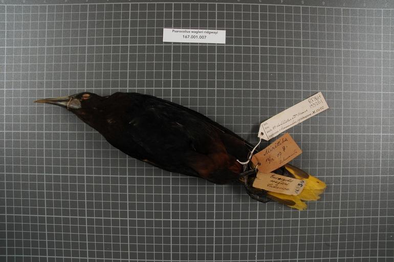 Keywords: Naturalis Biodiversity Center - RMNH.AVES.153261 1 - Psarocolius wagleri ridgwayi (van Rossem, 1934) - Icteridae - bird skin specimen.jpeg artwork Dimensions artwork Document type Icteridae Psarocolius Individual count 1 Infraspecific epithet ridgwayi Infraspecific rank Institution Naturalis Kind of unit artwork Kind of unit specimen skin Life stage Costarica Medium artwork Nomenclatural code General remarks Specimen contain two contrad cting collecting labels Data is shown from one label which Was form the same colector as another bird in the same box with same Acq date and donor The information of the other label isr egistrered in the comment fields ADDITIONAL info XX Ultra b Country remark other label Miritiba Sex remark other label f male Occurrence ID page Other fields Other versions artwork Permission license Naturalis donation CC-0 Publication location Scientific name Psarocolius wagleri ridgwayi van Rossem 1934 Scientific name authorship van Rossem 1934 male Source url http //bioportal naturalis nl Specific epithet wagleri State or province Subject keywords artwork Subject keywords publication Title artwork Title publication Type status Uploaded with GWToolset Naturalis_Biodiversity_Center_-_RMNH AVES 153261_1_-_Psarocolius_wagleri_ridgwayi_ van_Rossem _1934 _-_Icteridae_-_bird_skin_specimen http //medialib naturalis nl/file/id/RMNH AVES 153261_1/format/large Media donated by Naturalis Biodiversity Center Songbird specimens at Naturalis Biodiversity Center Psarocolius wagleri Psarocolius |