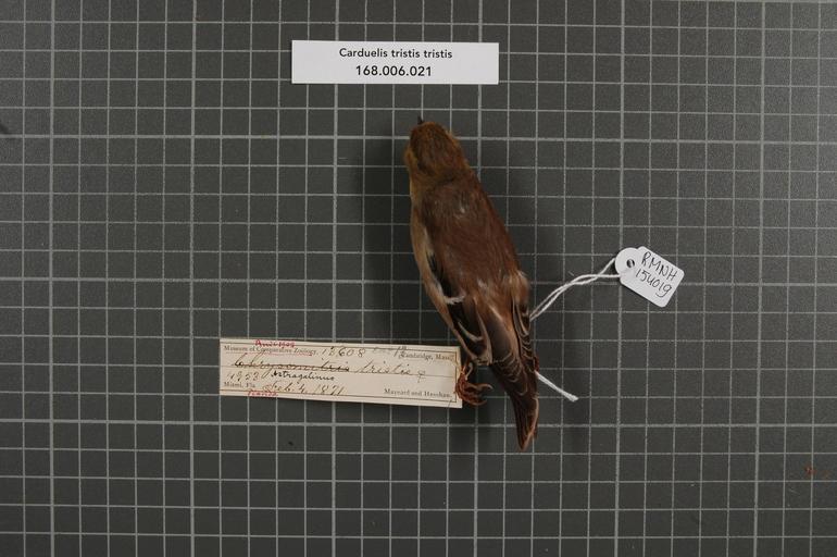 | Keywords: Naturalis Biodiversity Center - RMNH.AVES.154019 1 - Carduelis tristis tristis (Linnaeus, 1758) - Fringillidae - bird skin specimen.jpeg artwork Dimensions artwork Document type Fringillidae Carduelis Individual count 1 Infraspecific epithet tristis Infraspecific rank Institution Naturalis Kind of unit artwork Kind of unit specimen skin Life stage Florida Miami Medium artwork Nomenclatural code Occurrence ID page Other fields Other versions artwork Permission license Naturalis donation CC-0 Publication location Scientific name Carduelis tristis tristis Linnaeus 1758 Scientific name authorship Linnaeus 1758 female Source url http //bioportal naturalis nl Specific epithet tristis State or province Florida Subject keywords artwork Subject keywords publication Title artwork Title publication Type status Uploaded with GWToolset Naturalis_Biodiversity_Center_-_RMNH AVES 154019_1_-_Carduelis_tristis_tristis_ Linnaeus _1758 _-_Fringillidae_-_bird_skin_specimen http //medialib naturalis nl/file/id/RMNH AVES 154019_1/format/large Media donated by Naturalis Biodiversity Center Songbird specimens at Naturalis Biodiversity Center Spinus tristis Carduelis |