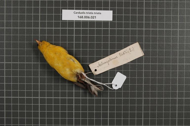| Keywords: Naturalis Biodiversity Center - RMNH.AVES.156840 2 - Carduelis tristis tristis (Linnaeus, 1758) - Fringillidae - bird skin specimen.jpeg artwork Dimensions artwork Document type Fringillidae Carduelis Individual count 1 Infraspecific epithet tristis Infraspecific rank Institution Naturalis Kind of unit artwork Kind of unit specimen skin Life stage Minn St Anthony Park Medium artwork Nomenclatural code Occurrence ID page Other fields Other versions artwork Permission license Naturalis donation CC-0 Publication location Scientific name Carduelis tristis tristis Linnaeus 1758 Scientific name authorship Linnaeus 1758 male Source url http //bioportal naturalis nl Specific epithet tristis State or province Minn Subject keywords artwork Subject keywords publication Title artwork Title publication Type status Uploaded with GWToolset Naturalis_Biodiversity_Center_-_RMNH AVES 156840_2_-_Carduelis_tristis_tristis_ Linnaeus _1758 _-_Fringillidae_-_bird_skin_specimen http //medialib naturalis nl/file/id/RMNH AVES 156840_2/format/large Media donated by Naturalis Biodiversity Center Songbird specimens at Naturalis Biodiversity Center Spinus tristis Carduelis |