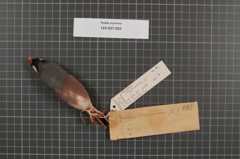 | Keywords: Naturalis Biodiversity Center - RMNH.AVES.161314 2 - Padda oryzivora (Linnaeus, 1758) - Estrildidae - bird skin specimen.jpeg artwork Dimensions artwork Document type Estrildidae Padda Individual count 1 Infraspecific epithet Infraspecific rank Institution Naturalis Kind of unit artwork Kind of unit specimen skin Life stage Batavia Medium artwork Nomenclatural code Occurrence ID page Other fields Other versions artwork Permission license Naturalis donation CC-0 Publication location Scientific name Padda oryzivora Linnaeus 1758 Scientific name authorship Linnaeus 1758 female Source url http //bioportal naturalis nl Specific epithet oryzivora State or province Batavia Subject keywords artwork Subject keywords publication Title artwork Title publication Type status Uploaded with GWToolset Naturalis_Biodiversity_Center_-_RMNH AVES 161314_2_-_Padda_oryzivora_ Linnaeus _1758 _-_Estrildidae_-_bird_skin_specimen http //medialib naturalis nl/file/id/RMNH AVES 161314_2/format/large Media donated by Naturalis Biodiversity Center Songbird specimens at Naturalis Biodiversity Center Lonchura oryzivora Lonchura |