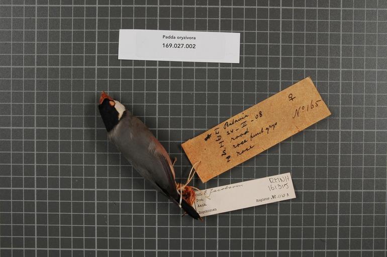 | Keywords: Naturalis Biodiversity Center - RMNH.AVES.161315 1 - Padda oryzivora (Linnaeus, 1758) - Estrildidae - bird skin specimen.jpeg artwork Dimensions artwork Document type Estrildidae Padda Individual count 1 Infraspecific epithet Infraspecific rank Institution Naturalis Kind of unit artwork Kind of unit specimen skin Life stage Batavia Medium artwork Nomenclatural code Occurrence ID page Other fields Other versions artwork Permission license Naturalis donation CC-0 Publication location Scientific name Padda oryzivora Linnaeus 1758 Scientific name authorship Linnaeus 1758 female Source url http //bioportal naturalis nl Specific epithet oryzivora State or province Batavia Subject keywords artwork Subject keywords publication Title artwork Title publication Type status Uploaded with GWToolset Naturalis_Biodiversity_Center_-_RMNH AVES 161315_1_-_Padda_oryzivora_ Linnaeus _1758 _-_Estrildidae_-_bird_skin_specimen http //medialib naturalis nl/file/id/RMNH AVES 161315_1/format/large Media donated by Naturalis Biodiversity Center Songbird specimens at Naturalis Biodiversity Center Lonchura oryzivora Lonchura |
