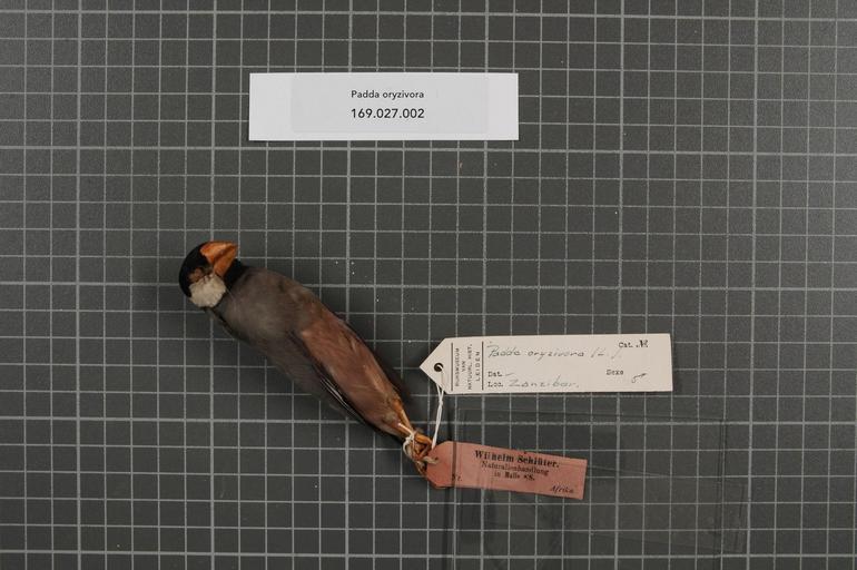 | Keywords: Naturalis Biodiversity Center - RMNH.AVES.161339 2 - Padda oryzivora (Linnaeus, 1758) - Estrildidae - bird skin specimen.jpeg artwork Dimensions artwork Document type Estrildidae Padda Individual count 1 Infraspecific epithet Infraspecific rank Institution Naturalis Kind of unit artwork Kind of unit specimen skin Life stage adult Zanzibar Medium artwork Nomenclatural code Occurrence ID page Other fields Other versions artwork Permission license Naturalis donation CC-0 Publication location Scientific name Padda oryzivora Linnaeus 1758 Scientific name authorship Linnaeus 1758 male Source url http //bioportal naturalis nl Specific epithet oryzivora State or province Zanzibar Subject keywords artwork Subject keywords publication Title artwork Title publication Type status Uploaded with GWToolset Naturalis_Biodiversity_Center_-_RMNH AVES 161339_2_-_Padda_oryzivora_ Linnaeus _1758 _-_Estrildidae_-_bird_skin_specimen http //medialib naturalis nl/file/id/RMNH AVES 161339_2/format/large Media donated by Naturalis Biodiversity Center Songbird specimens at Naturalis Biodiversity Center Lonchura oryzivora Lonchura |