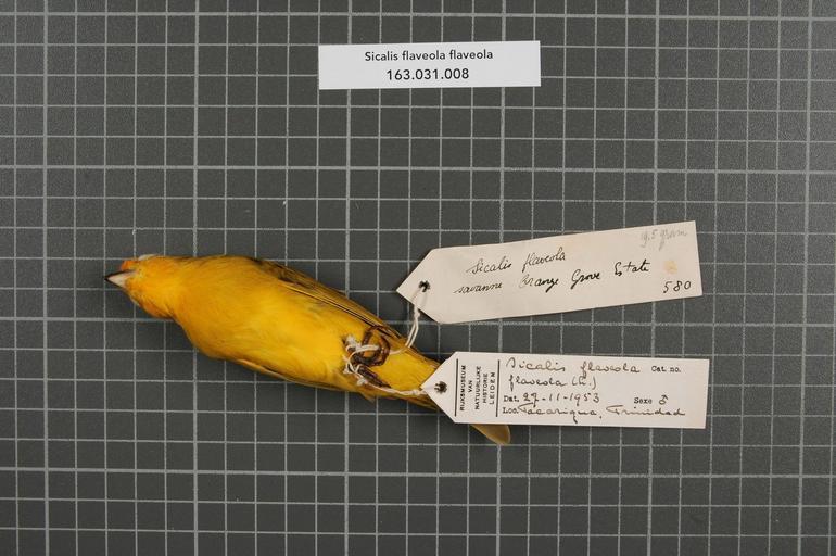 | Keywords: Naturalis Biodiversity Center - RMNH.AVES.21479 2 - Sicalis flaveola flaveola (Linnaeus, 1766) - Emberizidae - bird skin specimen.jpeg artwork Dimensions artwork Document type Emberizidae Sicalis Individual count 1 Infraspecific epithet flaveola Infraspecific rank Institution Naturalis Kind of unit artwork Kind of unit specimen skin Life stage Trinidad Tacarigua Savanna Orange Grove Estate Medium artwork Nomenclatural code Occurrence ID page Other fields Other versions artwork Permission license Naturalis donation CC-0 Publication location Scientific name Sicalis flaveola flaveola Linnaeus 1766 Scientific name authorship Linnaeus 1766 male Source url http //bioportal naturalis nl Specific epithet flaveola State or province Tacarigua Subject keywords artwork Subject keywords publication Title artwork Title publication Type status Uploaded with GWToolset Naturalis_Biodiversity_Center_-_RMNH AVES 21479_2_-_Sicalis_flaveola_flaveola_ Linnaeus _1766 _-_Emberizidae_-_bird_skin_specimen http //medialib naturalis nl/file/id/RMNH AVES 21479_2/format/large Media donated by Naturalis Biodiversity Center Songbird specimens at Naturalis Biodiversity Center Sicalis flaveola Sicalis |