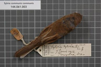 View Original:Naturalis Biodiversity Center - RMNH.AVES.2523 1 - Sylvia communis communis Latham, 1787 - Sylviidae - bird skin specimen.jpeg (1920x1277)