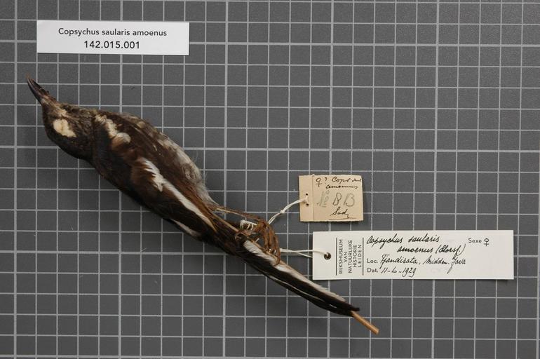 | Keywords: Naturalis Biodiversity Center - RMNH.AVES.27323 1 - Copsychus saularis amoenus (Horsfield, 1821) - Turdidae - bird skin specimen.jpeg artwork Dimensions artwork Document type Turdidae Copsychus Individual count 1 Infraspecific epithet amoenus Infraspecific rank Institution Naturalis Kind of unit artwork Kind of unit specimen skin Life stage Indonesia Midden-Java Tjandirata Medium artwork Nomenclatural code Sex remark On fieldlabel f male Occurrence ID page Other fields Other versions artwork Permission license Naturalis donation CC-0 Publication location Scientific name Copsychus saularis amoenus Horsfield 1821 Scientific name authorship Horsfield 1821 female Source url http //bioportal naturalis nl Specific epithet saularis State or province Midden-Java Subject keywords artwork Subject keywords publication Title artwork Title publication Type status Uploaded with GWToolset Naturalis_Biodiversity_Center_-_RMNH AVES 27323_1_-_Copsychus_saularis_amoenus_ Horsfield _1821 _-_Turdidae_-_bird_skin_specimen http //medialib naturalis nl/file/id/RMNH AVES 27323_1/format/large Media donated by Naturalis Biodiversity Center Songbird specimens at Naturalis Biodiversity Center Copsychus saularis museum specimens |