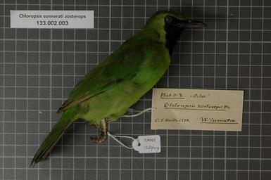 Keywords: Naturalis Biodiversity Center - RMNH.AVES.126949 1 - Chloropsis sonnerati zosterops Vigors & Horsfield, 1830 - Irenidae - bird skin specimen.jpeg artwork Dimensions artwork Document type Irenidae Chloropsis Individual count 1 Infraspecific epithet zosterops Infraspecific rank Kind of unit artwork Kind of unit specimen skin Life stage Indonesia W Sumatra Medium artwork Nomenclatural code Additional label info Phyllornis Sonneratii Selb Hl 100 Mulleri Temm Pl col male Sumatra Müller lab by Temminck Sex remark on label male lab Occurrence ID Other fields Other versions artwork Permission license Naturalis donation CC-0 Publication location Scientific name Chloropsis sonnerati zosterops Vigors Horsfield 1830 Scientific name authorship Vigors Horsfield 1830 male Source url Specific epithet sonnerati State or province W Sumatra Subject keywords artwork Subject keywords publication Title artwork Title publication Type status Uploaded with GWToolset Naturalis_Biodiversity_Center_-_RMNH AVES 126949_1_-_Chloropsis_sonnerati_zosterops_Vigors_ _Horsfield _1830_-_Irenidae_-_bird_skin_specimen http //medialib naturalis nl/file/id/RMNH AVES 126949_1/format/large Media donated by Naturalis Biodiversity Center Songbird specimens at Naturalis Biodiversity Center Chloropsis sonnerati Chloropsis |