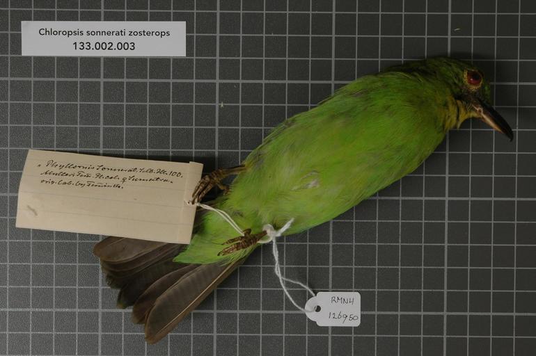 Keywords: Naturalis Biodiversity Center - RMNH.AVES.126950 2 - Chloropsis sonnerati zosterops Vigors & Horsfield, 1830 - Irenidae - bird skin specimen.jpeg artwork Dimensions artwork Document type Irenidae Chloropsis Individual count 1 Infraspecific epithet zosterops Infraspecific rank Kind of unit artwork Kind of unit specimen skin Life stage Indonesia W Sumatra Medium artwork Nomenclatural code Additional label info Phyllornis Sonnerat Selb Hl 100 Mulleri Temm Pl col female Sumatra orig lab by Temminck Sex remark on label female lab Occurrence ID Other fields Other versions artwork Permission license Naturalis donation CC-0 Publication location Scientific name Chloropsis sonnerati zosterops Vigors Horsfield 1830 Scientific name authorship Vigors Horsfield 1830 female Source url Specific epithet sonnerati State or province W Sumatra Subject keywords artwork Subject keywords publication Title artwork Title publication Type status Uploaded with GWToolset Naturalis_Biodiversity_Center_-_RMNH AVES 126950_2_-_Chloropsis_sonnerati_zosterops_Vigors_ _Horsfield _1830_-_Irenidae_-_bird_skin_specimen http //medialib naturalis nl/file/id/RMNH AVES 126950_2/format/large Media donated by Naturalis Biodiversity Center Songbird specimens at Naturalis Biodiversity Center Chloropsis sonnerati Chloropsis |