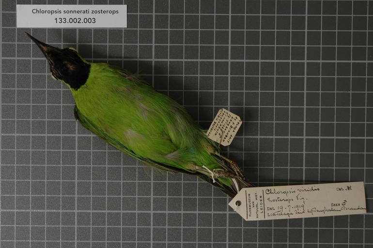 Keywords: Naturalis Biodiversity Center - RMNH.AVES.127008 1 - Chloropsis sonnerati zosterops Vigors & Horsfield, 1830 - Irenidae - bird skin specimen.jpeg artwork Dimensions artwork Document type Irenidae Chloropsis Individual count 1 Infraspecific epithet zosterops Infraspecific rank Kind of unit artwork Kind of unit specimen skin Life stage Langkat Telaga Sait bij Pengkalan Brandan Medium artwork Nomenclatural code Locality remark On RMNH label Pengkalan Brandan Should probably be Pangkalanbrandan Occurrence ID Other fields Other versions artwork Permission license Naturalis donation CC-0 Publication location Scientific name Chloropsis sonnerati zosterops Vigors Horsfield 1830 Scientific name authorship Vigors Horsfield 1830 male Source url Specific epithet sonnerati State or province Langkat Subject keywords artwork Subject keywords publication Title artwork Title publication Type status Uploaded with GWToolset Naturalis_Biodiversity_Center_-_RMNH AVES 127008_1_-_Chloropsis_sonnerati_zosterops_Vigors_ _Horsfield _1830_-_Irenidae_-_bird_skin_specimen http //medialib naturalis nl/file/id/RMNH AVES 127008_1/format/large Media donated by Naturalis Biodiversity Center Songbird specimens at Naturalis Biodiversity Center Chloropsis sonnerati Chloropsis |
