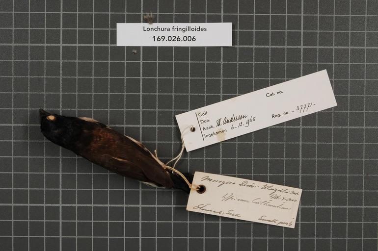 | Keywords: Naturalis Biodiversity Center - RMNH.AVES.37771 1 - Lonchura fringilloides Lafresnaye, 1835 - Estrildidae - bird skin specimen.jpeg artwork Dimensions artwork Document type Estrildidae Lonchura Individual count 1 Infraspecific epithet Infraspecific rank Institution Naturalis Kind of unit artwork Kind of unit specimen skin Life stage Tanzania Morogoro distr Kluguru Mts Medium artwork Nomenclatural code Occurrence ID page Other fields Other versions artwork Permission license Naturalis donation CC-0 Publication location Scientific name Lonchura fringilloides Lafresnaye 1835 Scientific name authorship Lafresnaye 1835 female Source url http //bioportal naturalis nl Specific epithet fringilloides State or province Morogoro distr Subject keywords artwork Subject keywords publication Title artwork Title publication Type status Uploaded with GWToolset Naturalis_Biodiversity_Center_-_RMNH AVES 37771_1_-_Lonchura_fringilloides_Lafresnaye _1835_-_Estrildidae_-_bird_skin_specimen http //medialib naturalis nl/file/id/RMNH AVES 37771_1/format/large Media donated by Naturalis Biodiversity Center Songbird specimens at Naturalis Biodiversity Center Lonchura fringilloides Lonchura |